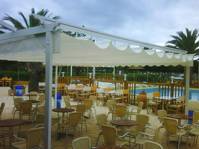 Materialul Pergolei oferă protecție UV și este impermeabil, ignifugat, disponibil într-o gamă vastă de culori.