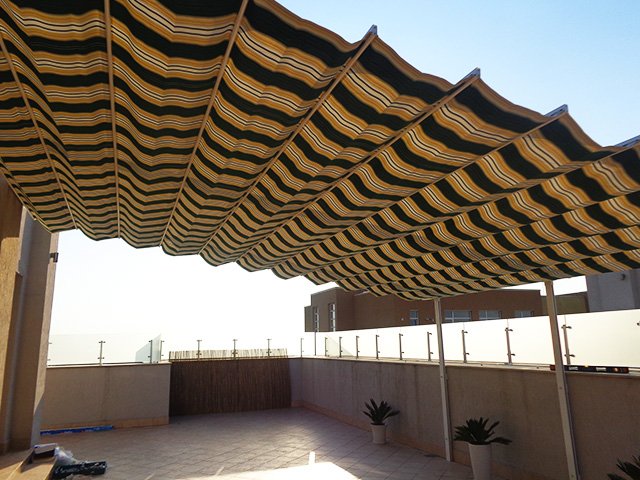 Aceasta poate fi realizată pe o structură de aluminiu sau adaptată la construcția existentă de fier sau de lemn, fiind potrivită pentru acoperirea teraselor și a spațiilor ample (6m x 6m dintr-o singură acționare).